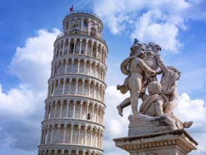 世界遺産に登録されているピサの斜塔を見学。観光時間は1時間30分です。